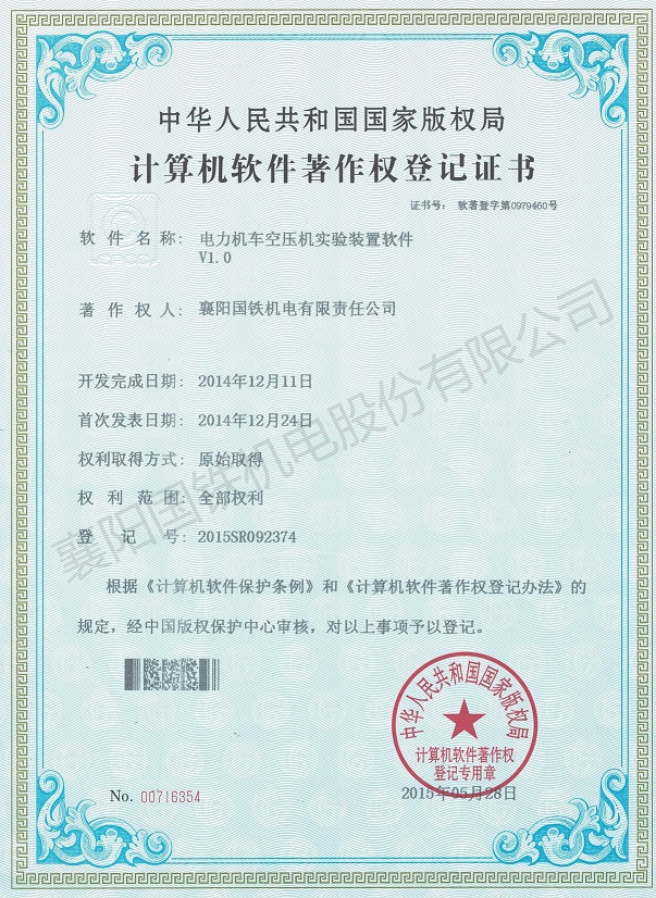 電力機(jī)車(chē)空壓機(jī)實(shí)驗(yàn)裝置軟件(軟件著作權(quán)證書(shū))
