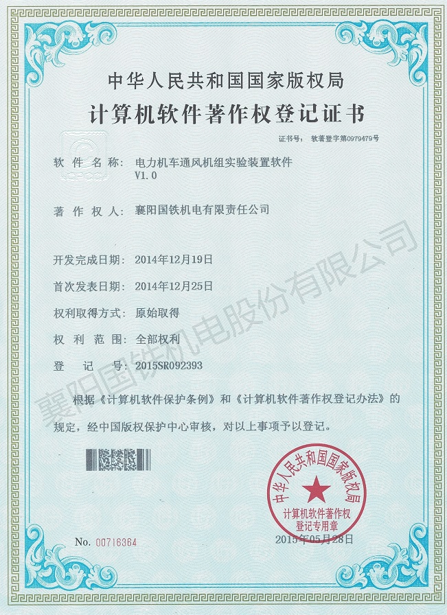 電力機(jī)車(chē)通風(fēng)機(jī)組實(shí)驗(yàn)裝置軟件(軟件著作權(quán)證書(shū))