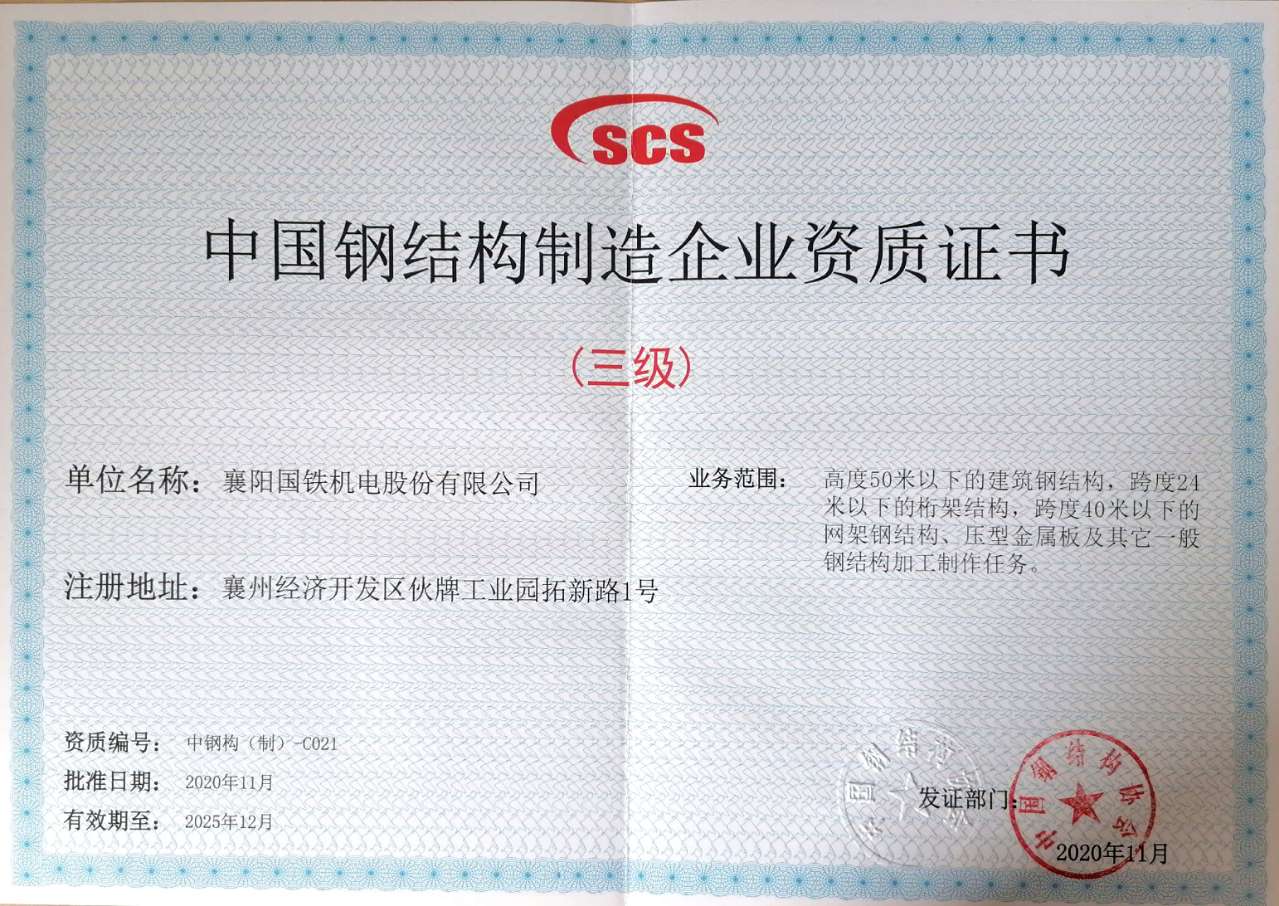 中國鋼結(jié)構(gòu)制造業(yè)企業(yè)資質(zhì)證書